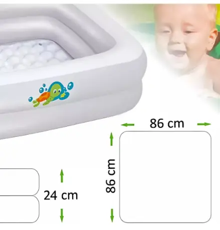 - Contenido: Una bañera inflable para bebé, parche de reparación