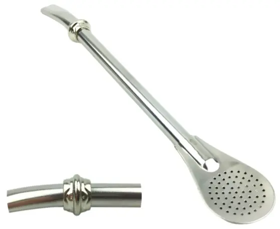 Disfruta de tu mate con la Bombilla de Acero Inoxidable Plateada, un accesorio resistente, duradero e higiénico que asegura una experiencia perfecta en cada cebada. Fabricada en acero inoxidable de alta calidad, evita la corrosión, es fácil de limpiar y mantiene su brillo con el uso diario. Su diseño clásico y práctico la convierte en la compañera ideal para quienes disfrutan de la tradición del mate con comodidad y estilo.