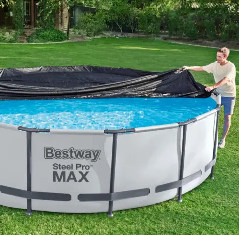El Cobertor Bestway para piscinas tubulares es un cobertor resistente que protegerá el agua de su piscina de las impurezas.