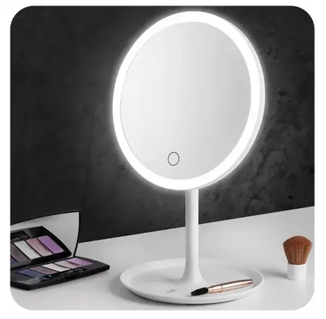 Iluminá tu rutina diaria con este espejo redondo de 17,5 cm que integra base estable y luz LED perimetral. Ideal para maquillarse, afeitarse o hacer retoques con claridad, su diseño compacto y moderno lo hace perfecto para tocadores o baños.