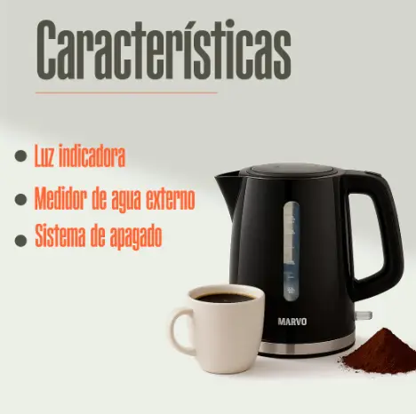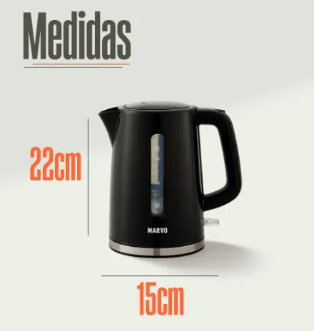 Elevá tu experiencia diaria con la Jarra Eléctrica Marvo en acabado negro: elegante, práctica y eficiente. Con 1,7 litros de capacidad, es perfecta para preparar varias rondas sin tener que recargar constantemente. Su potencia permite que el agua alcance el punto de ebullición rápidamente, mientras que materiales resistentes y un diseño funcional te ofrecen durabilidad. La base 360° asegura comodidad para tomarla desde cualquier ángulo, y el indicador luminoso te da un aviso claro cuando el equipo está en funcionamiento.