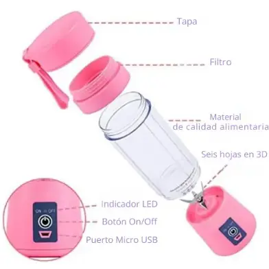 Perfecta para preparar batidos de proteínas, jugos o smoothies al instante, gracias a su vaso desmontable, materiales no tóxicos, doble sistema de protección, batería recargable y tamaño liviano. Es tu compañera ideal para el gym, la oficina o cualquier viaje.