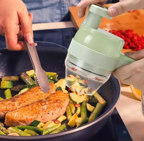 Ideal para quienes quieren agilidad en la cocina sin ocupar mucho espacio: este mini mixer portátil en color verde es perfecto para picar, licuar o procesar ingredientes ligeros como hierbas, frutas suaves, ajo o cebolla.