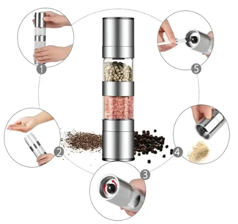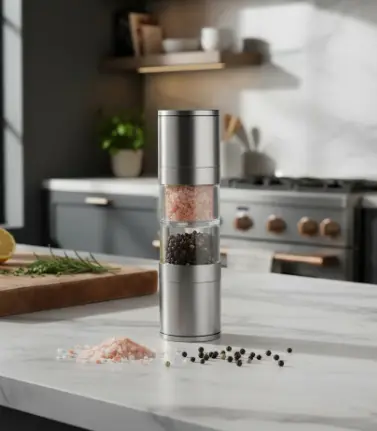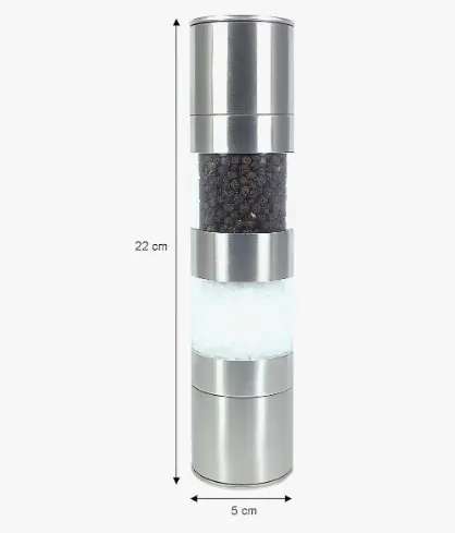 Lleva tus condimentos al siguiente nivel con este molinillo doble de 22 cm, ideal para sal y pimienta o especias secas.