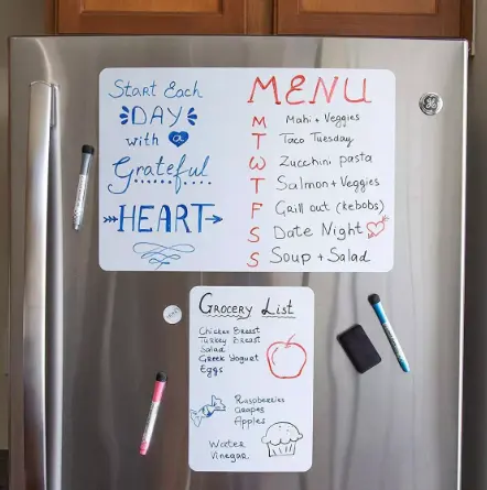 Convertí la puerta de tu heladera en un espacio funcional con esta pegatina magnética tipo pizarra.