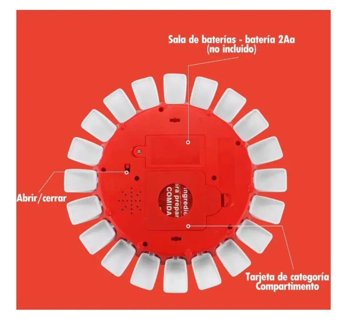 * Dispositivo central con letras: Se aprecia un círculo con letras del abecedario, que probablemente se utiliza para sortear la letra de cada ronda.